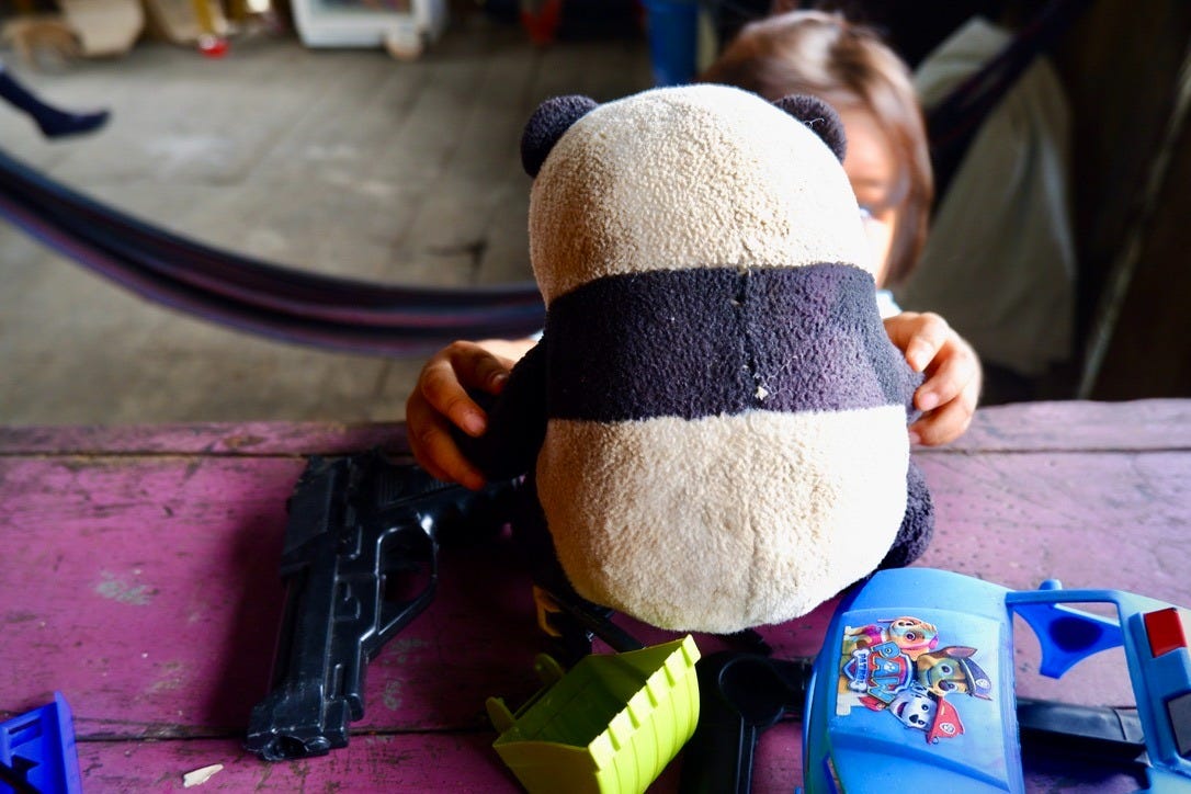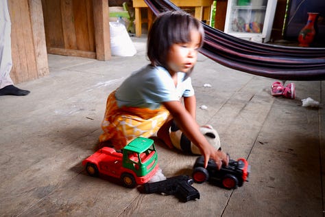 The thing is, I’m not even sure if she knew what it was. She never held it by the handle and played with it as if it were any other toy. I just loved the metaphor of a gun in an abandoned toy box, finding its way into the hands of this adorable girl. I couldn’t help but be reminded of one of my favorite movies, City of God, and the ways in which our culture of violence seeps into even the most innocent lives.