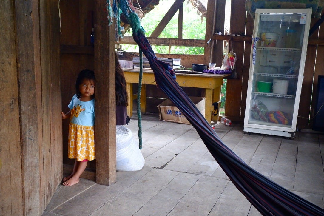 The family welcomed us inside and offered some sour fruits that looked a bit like scaly acorns. They weren’t very tasty, but I was thankful for the hospitality — especially once the storm fully hit minutes later. And in the rainforest, when it rains, it pours.