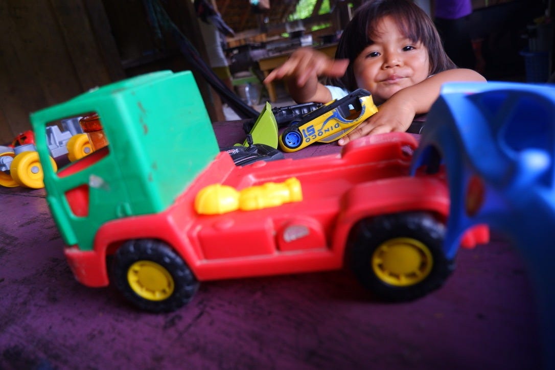 Eventually, they got bored of the ball and scoured through a deteriorating cardboard box labeled ‘gratis’ (free). Broken toy trucks, figurines with missing heads, and assorted plastic shapes — these toys were once someone else’s trash, but were now the sources of imaginative joy. The boy and I drove the trucks around the table and walls, vrrrrroom, and I taught him how to take use my camera, which used to take pictures like this: